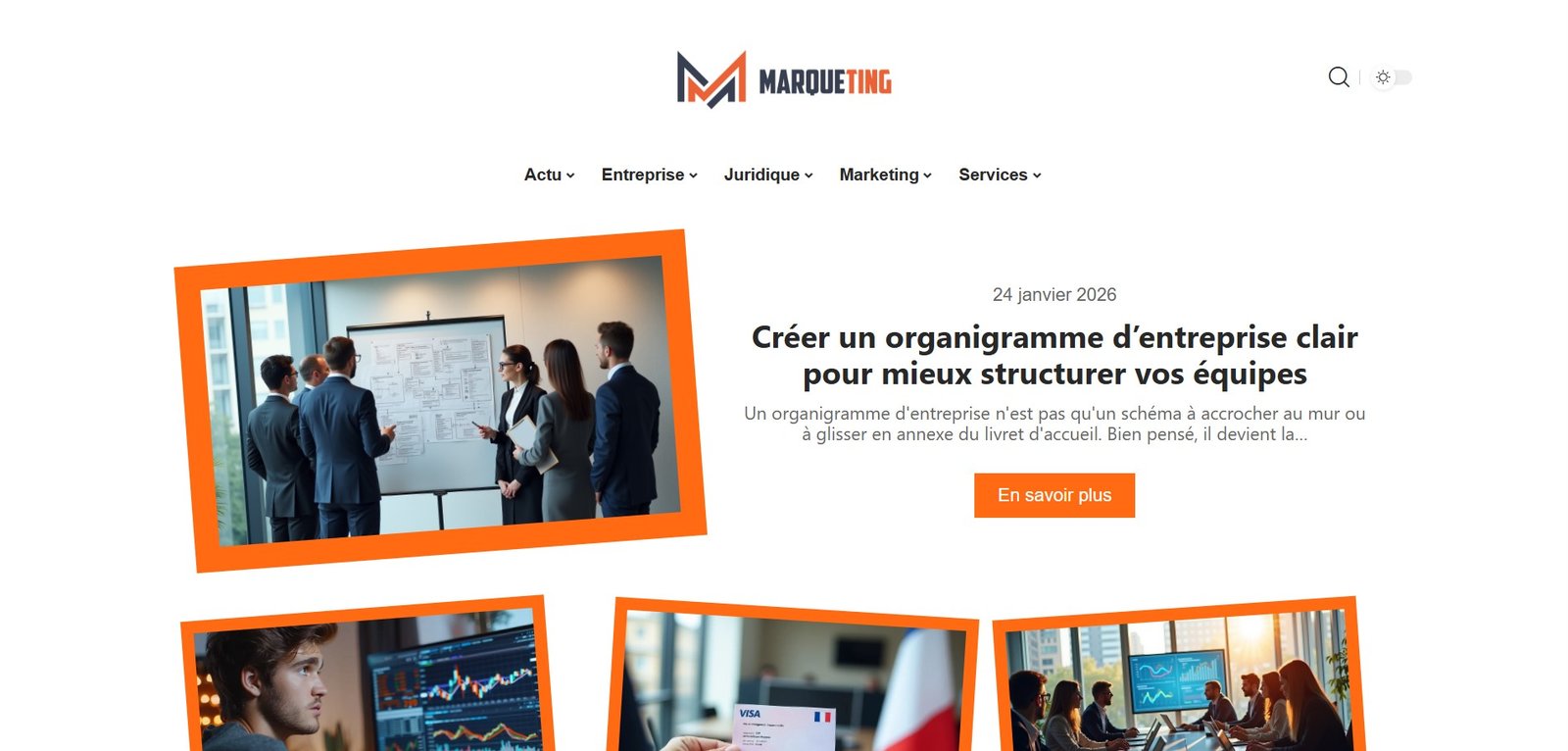 Marqueting.fr propose des contenus orientés vers le développement de l’image de marque. Les articles abordent des sujets tels que le positionnement, l’identité visuelle, la communication digitale et la gestion de la réputation en ligne. L’objectif est d’aider les entreprises à se démarquer et à renforcer leur crédibilité auprès de leur audience.
